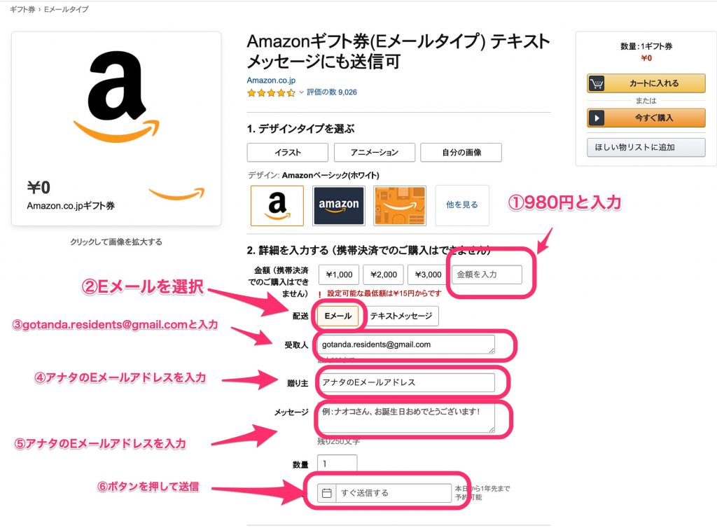 ▼Amazonギフトの購入方法はこちら